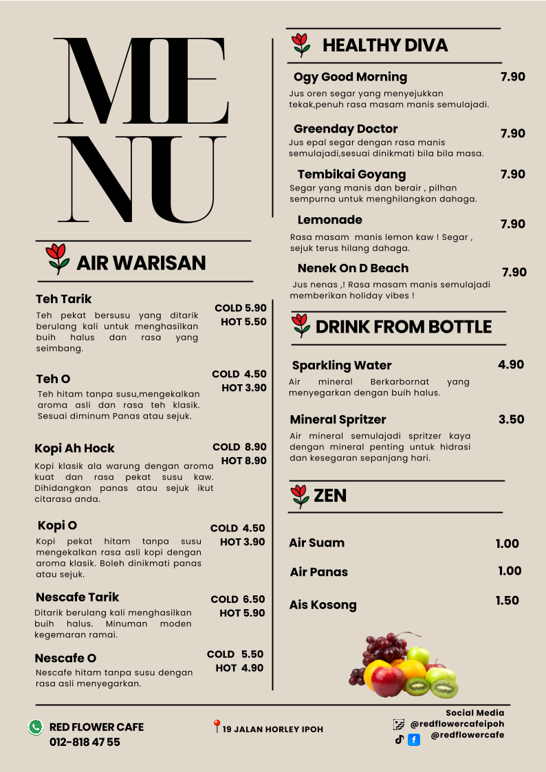 For reservations, you can contact them at +60 12-818 4755. Don’t miss out—come and discover the magic at RED FLOWER CAFE!